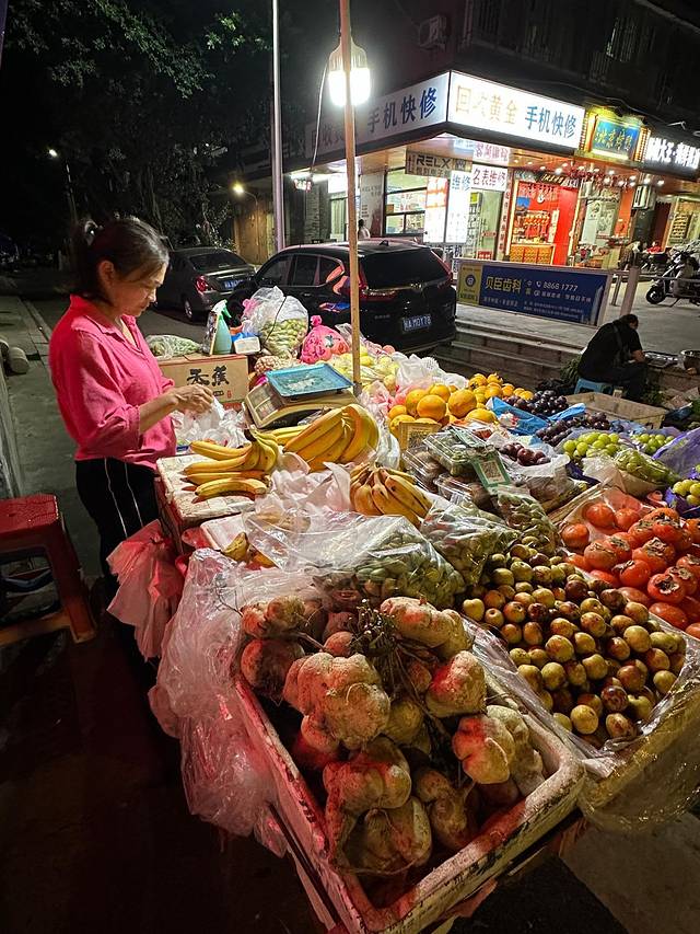 晚上散步,酒店对面的水果摊,终于找到一个卖水果的,哈哈