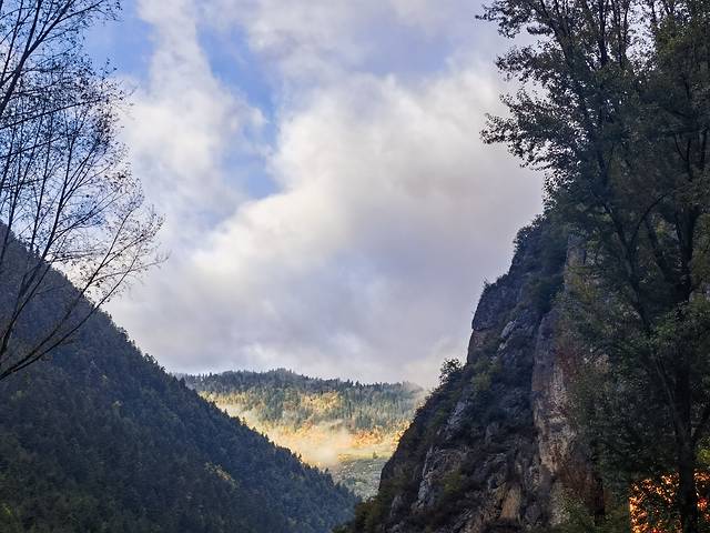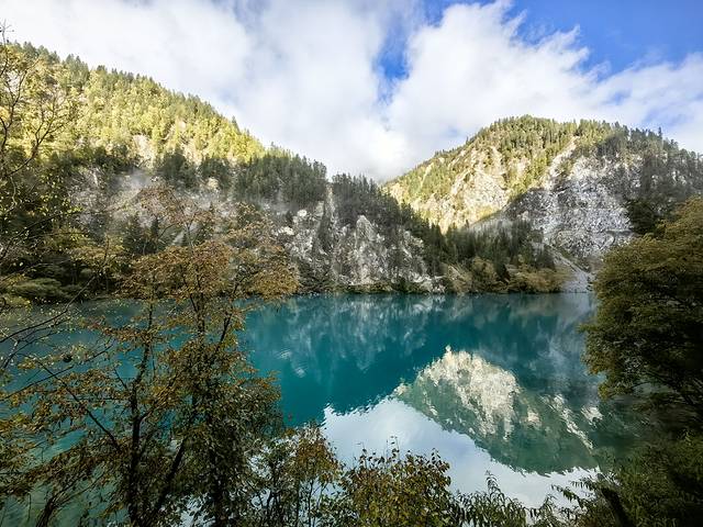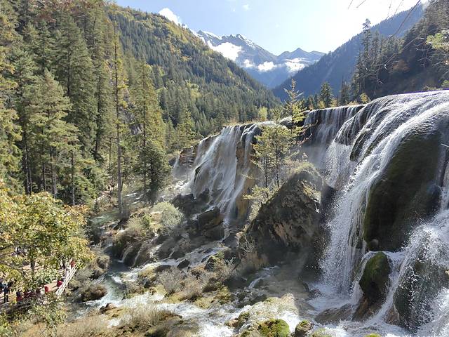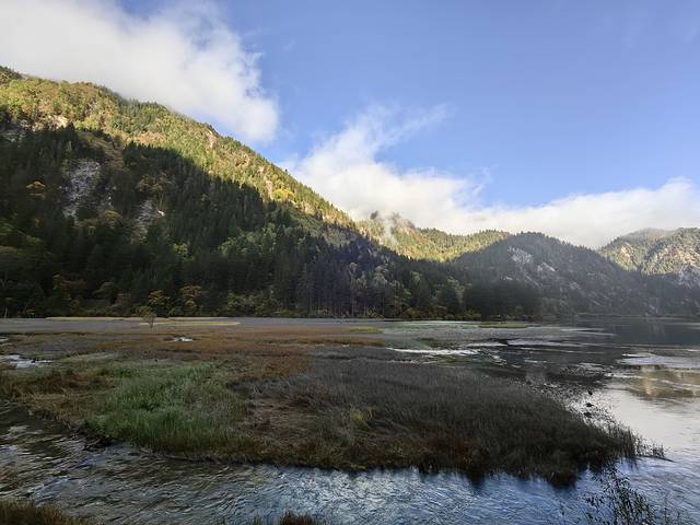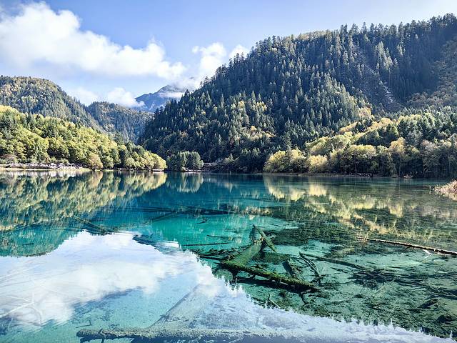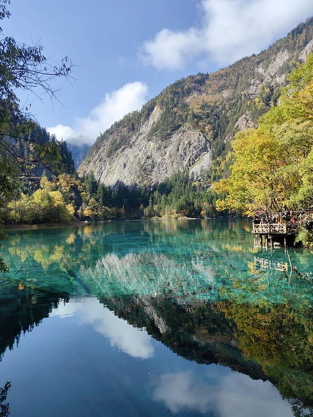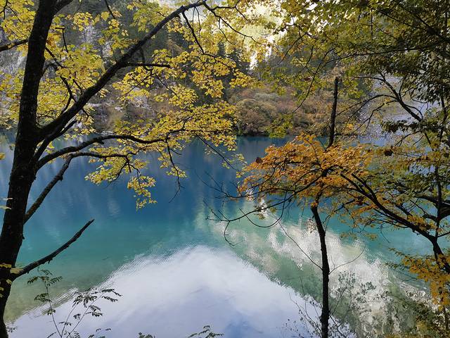 把九寨沟列入旅游计划有几年了 早已耳闻了十月的九寨 是秋天的童话世界 于是在十月底的周末 踏上了寻秋之旅 可惜的是 今年气温偏高 九寨的秋来得晚了一些 看不到层林尽染 色彩斑斓的景色了 庆幸的是 进景区的这天天气巨好 观感极佳