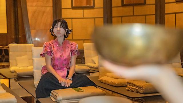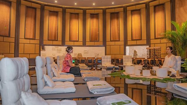 在佛顶宫的地下5层,这里有一个疗愈空间,在这里可以体验颂钵音疗、芳香疗愈,感受极致的禅意生活。