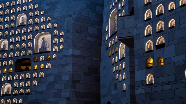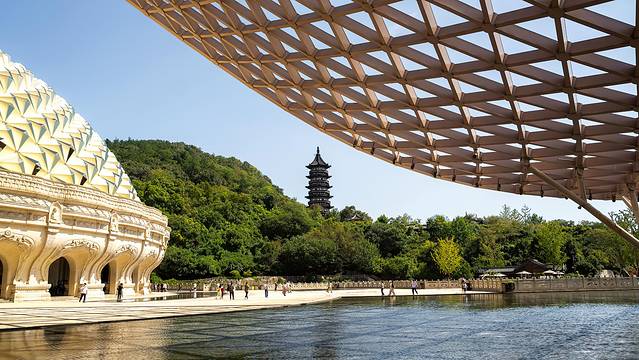 佛顶宫建于矿坑之上,曾获得詹天佑奖和鲁班奖双料奖项,与佛顶塔遥想呼应,是当代建筑艺术当之无愧的瑰宝。