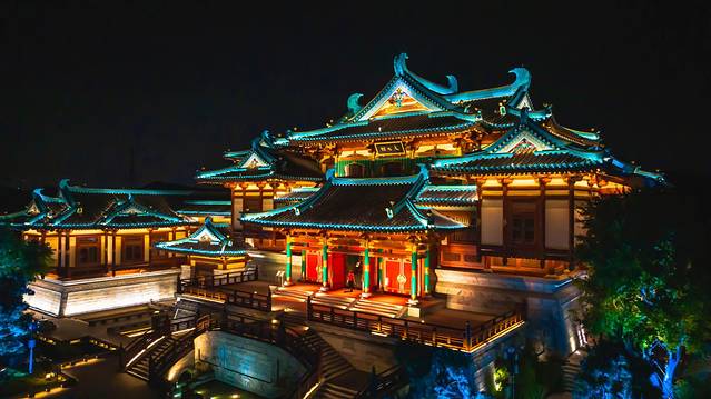 金陵小城是牛首山下的国风小城,如果说白天你看不出它的惊艳的话,一定要等到晚上,当屋檐殿脚的华灯亮起,你肯定会爱上这里,你将拥有一个独属于你的宁静、静谧的金陵小城。