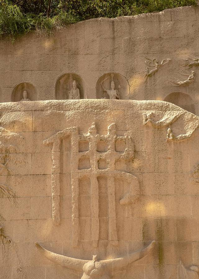 这是位于牛首 山东 峰山麓的摩崖石刻,三面崖壁上的石像,一尊尊沉静的坐卧于山间,牛首山佛学文化,在这一刻也得到了体现。