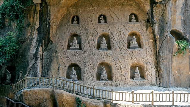 从佛顶宫出来,最不可错过的当属山路两侧的一尊尊石龛佛像。