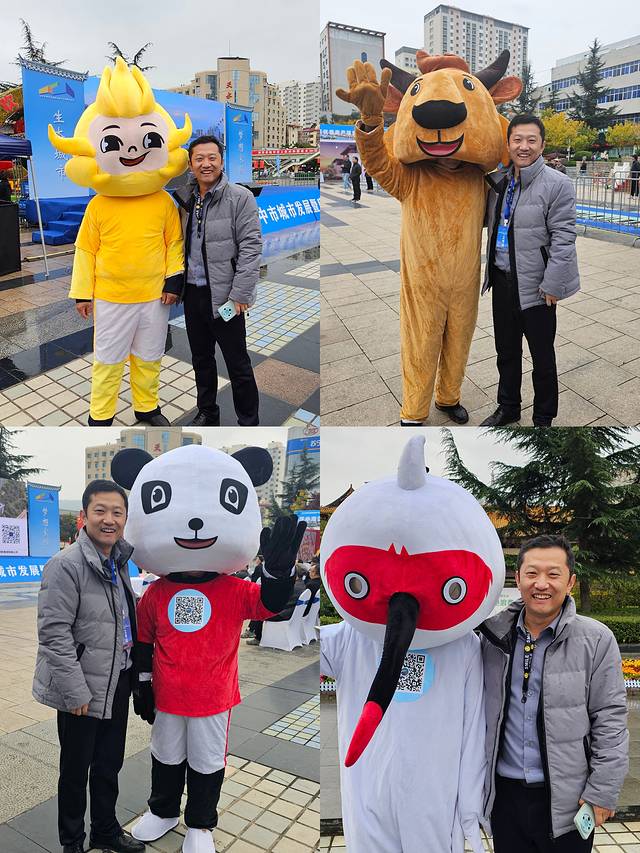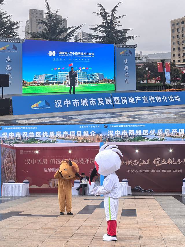 下午4点展会组织在天水龙城广场彩排。秦岭四宝之二,朱鹮和羚牛,哈哈
