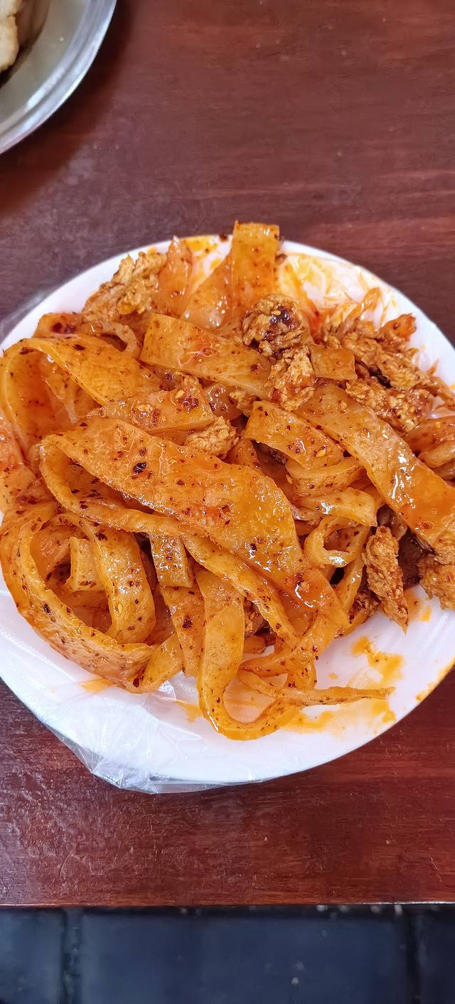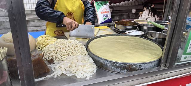 擀面皮,比宝鸡的软一些,辣子不辣但很香。