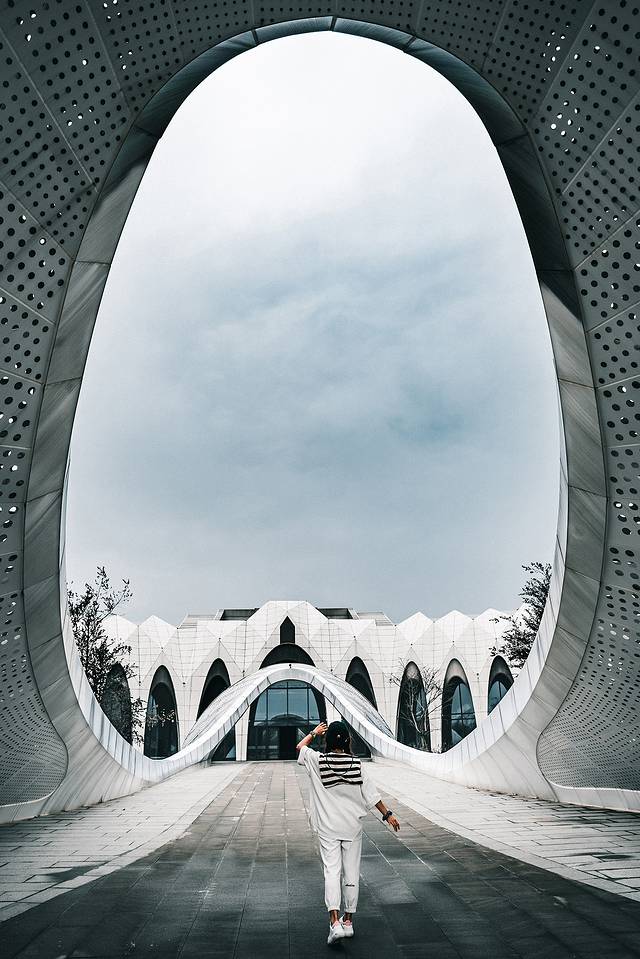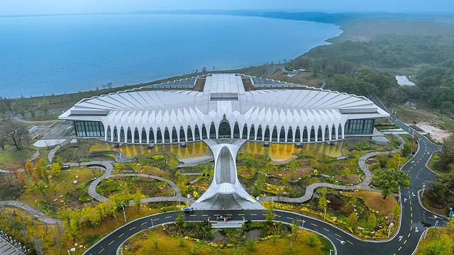 候鸟小镇里有一个超有设计感的建筑,这里面藏着一个候鸟博物馆。航拍视角下,像极了展翅欲飞的候鸟,非常震撼。