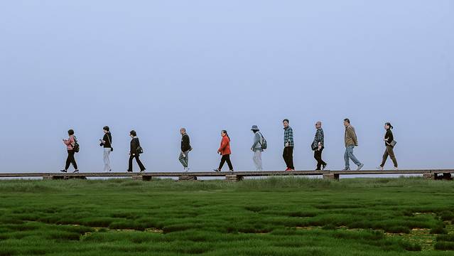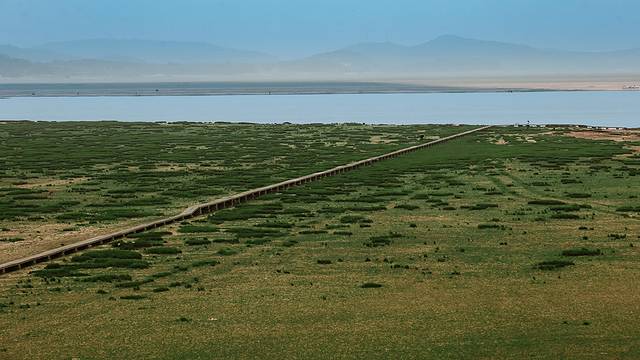 人行于栈桥之上,有种天地之间的苍茫与壮阔。