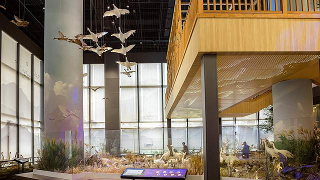 而这个候鸟博物馆也是干货满满!不但有候鸟知识的介绍,详细展示了候鸟的习性、特征、喜好,还介绍了鄱阳湖湿地的独特地理特质,是什么,能够吸引无数的候鸟过来越冬。