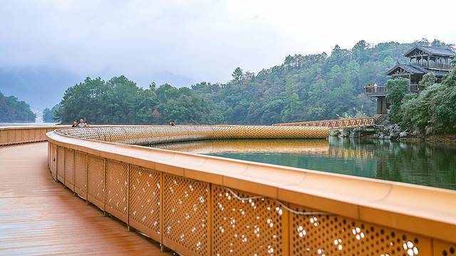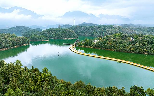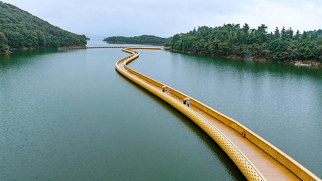 最值得打卡的还有金龙桥,宛如一条金龙盘亘与湖面之上,航拍视角下,格外壮观。而金龙湖,也连接着两座小岛。