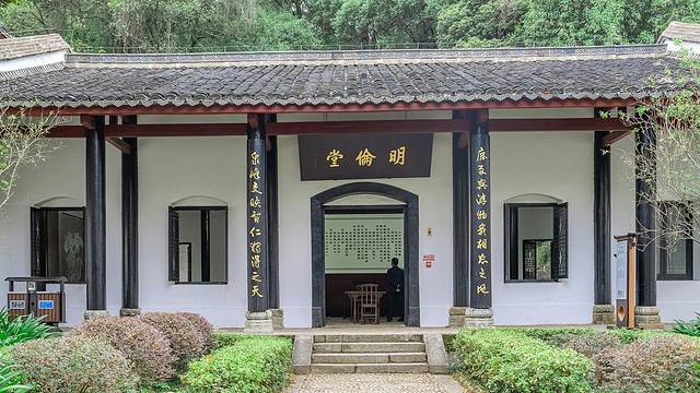 书院内有御书阁、明伦堂等建筑,御书阁是藏书之所,相当于我们现如今的图书馆,而明伦堂则是书院授课的地方,故外悬挂有“鹿豕与游,物我相忘之地;泉峰交映,仁智独得之天”的对联。