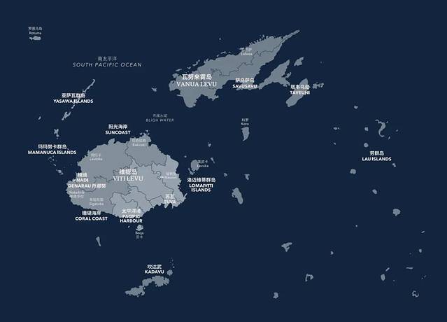 斐济是一个位于南太平洋的岛国,由330+个岛屿组成,主要有主岛维提岛(Viti Levu)和北岛瓦努阿岛(Vanua Levu)。
