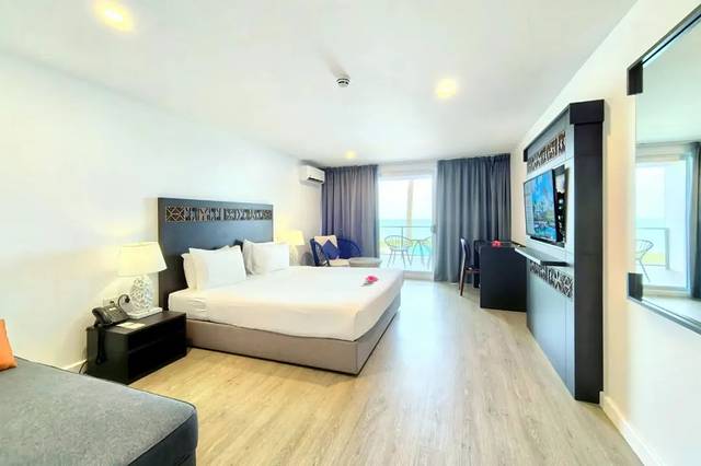 度假村的餐厅和泳池酒吧都可以无死角看海,并且餐厅提供的料理除了经典欧陆风格,也有亚洲气息浓郁的炒面炒米粉。