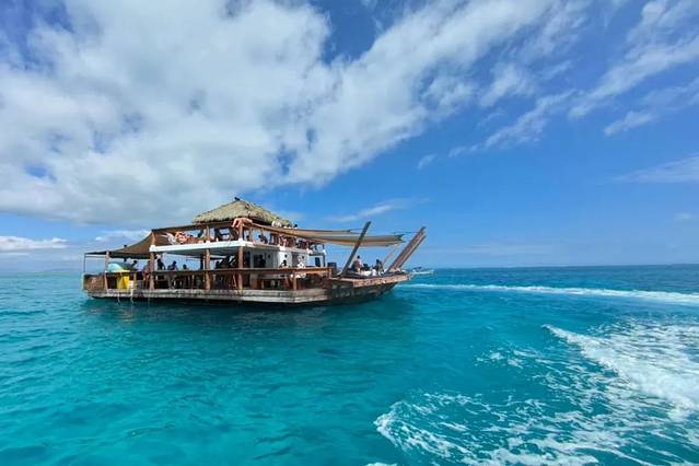 托阔里奇岛喜来登距离楠迪Nadi西海岸35公里,从丹那绕码头Port Denarau乘坐公共渡轮约2小时航程,全程空调海景,船身还很稳定,晕船党没压力。船票可以在South Seas Cruises官网预订(有时会有折扣),现场购买也行,参考价格约在850人民币/人/往返。