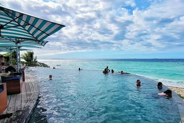 除了在酒吧喝一个冰冻的椰子或者小酌一番,到特意修建的无边际泳池看海畅泳也很有意思哦!