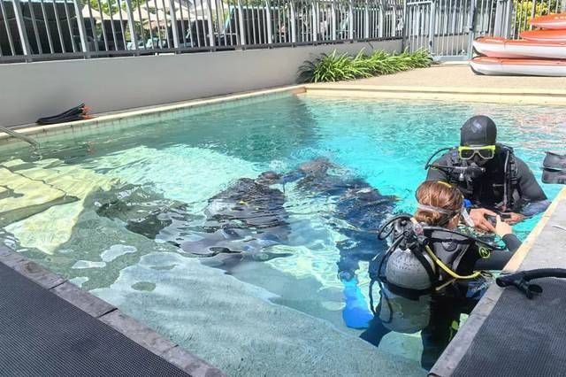 “海吐”潜水员们的福音来了,你不需要与巨浪搏斗就能轻松亲近各种鱼类,几乎每潜都能与海龟、礁鲨、鳐鱼偶遇;两潜之间的水面等候时间也不需要在船上晃动等待,因为与岸边距离很近,每潜回到沙滩上晒晒太阳,甚至在泳池嬉水也完全可以。说到这里我似乎听到了潜水员们的欢呼声啊!