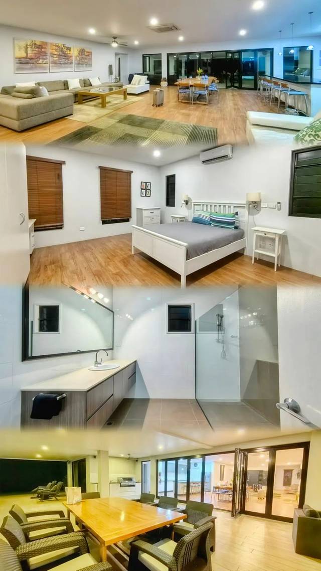 像我和几个小伙伴入住的这一栋,一共6个睡房(全部自带独立卫浴),客厅餐厅都大得无边无际,厨房用具一应俱全,开车到附近超市鱼市场买菜就能自己做大餐了!