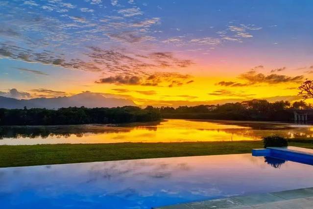 这个时候我们才发现,原来我们那巨大的私人泳池面前是河流通向大海的出口。霞彩、河面、泳池面全是统一的色调,此时清风徐来,你有什么烦恼都会像春天的花儿一样:想开了!