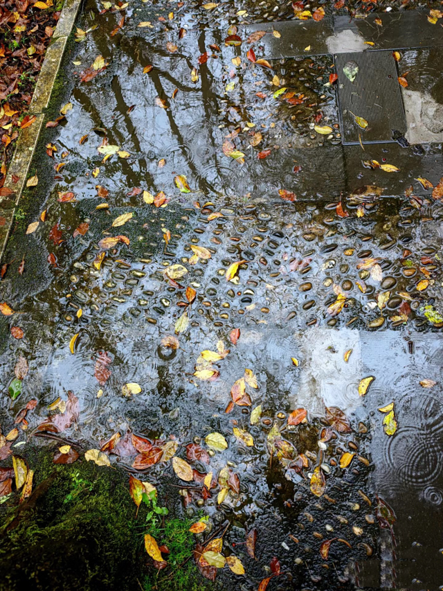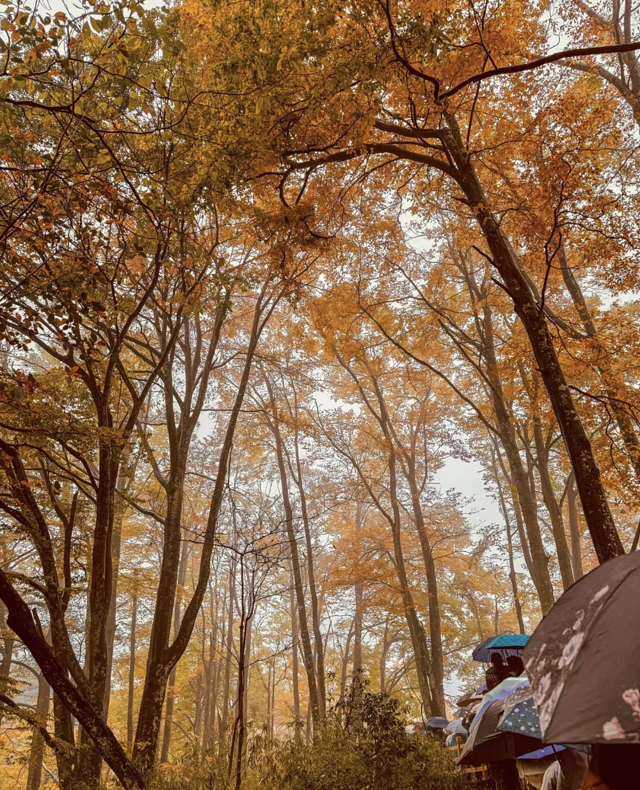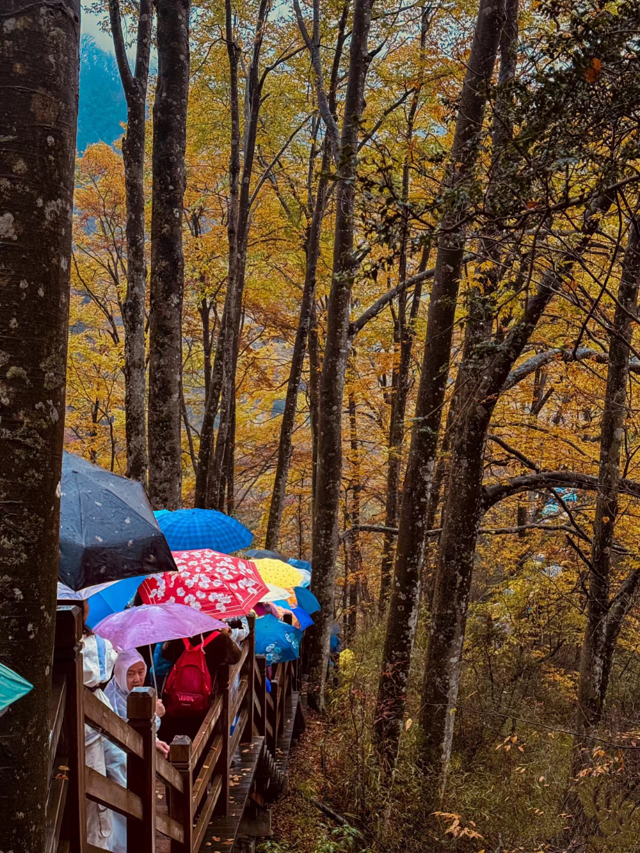 出来后我们继续去黑熊沟,黑熊沟本来就是看水景为主,遇到下雨反而水韵更浓,空气湿润清新,雨水在树叶上轻轻滴落,两岸的红叶显得愈发鲜艳夺目。