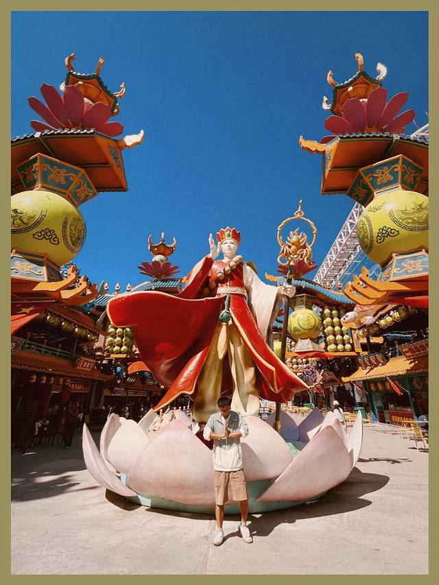 ❸ 景点打卡:门口的金莲池有善财童子像、靠近左边就是千佛门、进去是巨型的千手观音、坐电梯到山顶有五佛冠,另外从山上往下俯瞰寺内也很美,这几个是推荐打卡的地方,其他都挺美的,可以慢慢感受;