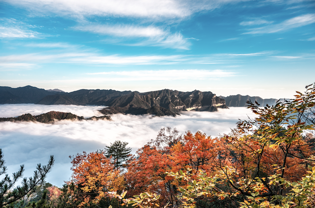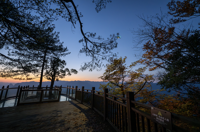 燕子岭沿途都可赏红叶,一路或深或浅,可谓是一步一景,而看云海最推荐的就是云天飞燕观景台了,在一路蜿蜒的阶梯后方可到达那片令眼前豁然开朗的玻璃观景台。