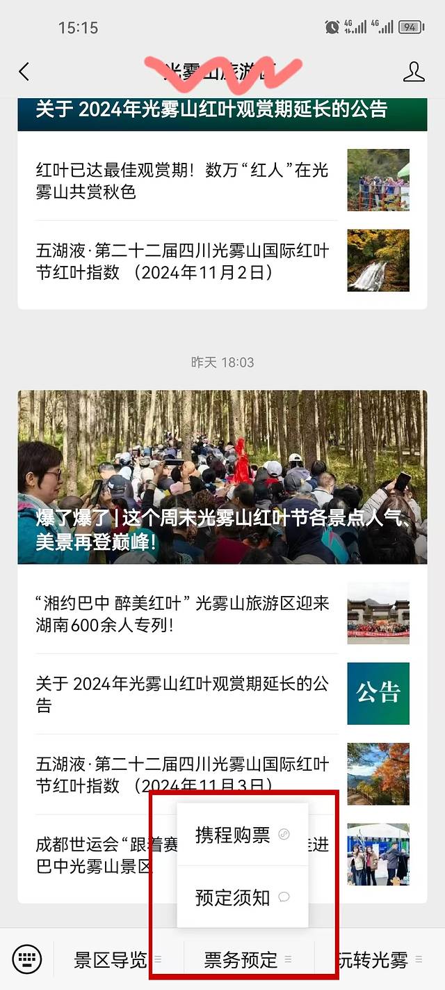 交通:自驾来的朋友要注意红叶节期间车辆不能开进景区,所以在景区内去各个景点赏景还需要购mai景区的景交车;坐高铁动车前来的朋友记得要提前一天在景区gong众号里购mai好第二天的景区直通车。(因为平台限制,大家可以去光雾山旅游区公zhong号查询)