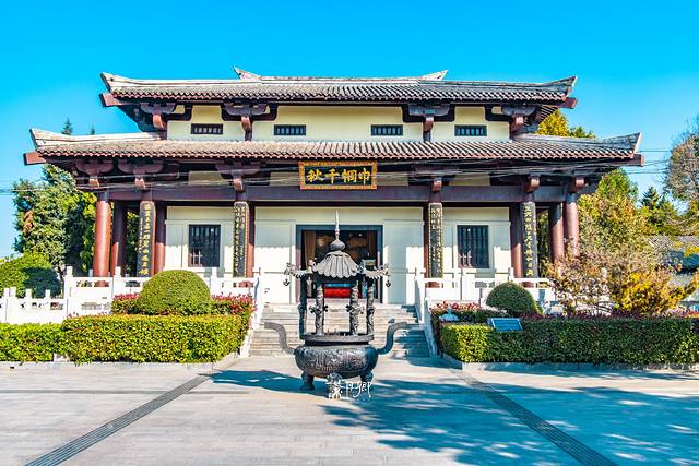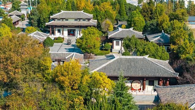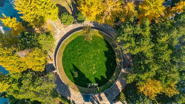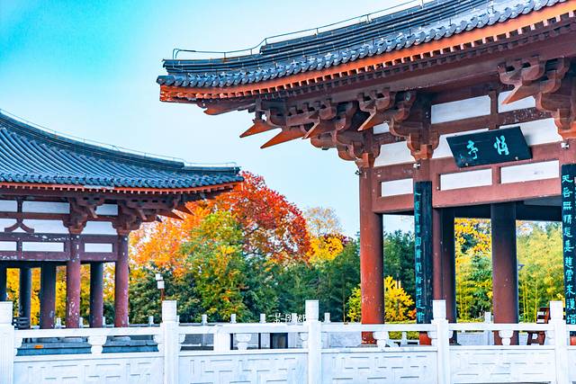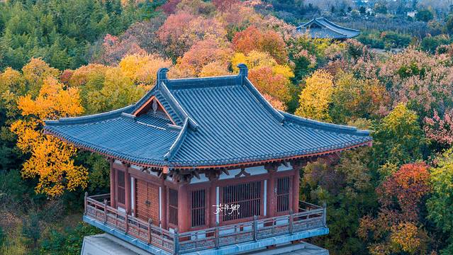 钟馗文化园不仅呈现着中国传统神话人物钟馗事迹及文化,同时还是一个小众的赏秋胜地。五彩斑斓的秋色装点整个文化园,使得新建建筑颇有古感。
