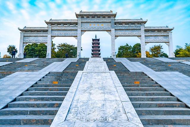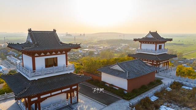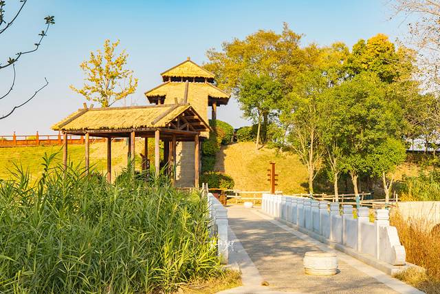 不远处的蟠龙山之巅,还有一座仿古建筑,是看日落、远眺的好去处。喜欢爬山的朋友,不妨再去爬一爬蟠龙山,在秋色中感受建筑与日落余晖的氛围。