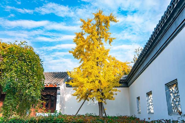 张氏园亭,是始建于宋天圣年间的私家园林,又称兰皋园,欧阳修、苏轼、曾巩、黄庭坚等文人曾到访。苏东坡更是作《灵璧张氏园亭记》记述了张氏园亭当时的景状,记以园美而成,园以文美而名。院落子有一棵银杏树正黄得绚烂,赶紧去看。