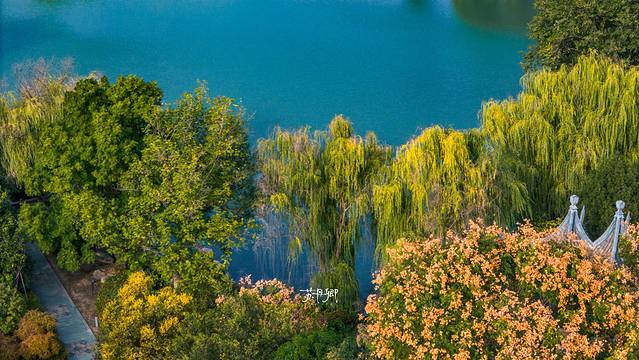 虞姬文化园的秋色也不错,园内亭台楼阁,雕梁画栋,结构巧妙,适合慢慢走慢慢看,主打一个悠闲自在。里面包括有虞姬文化展示区、霸王别姬休闲广场、霸王文化展示区。