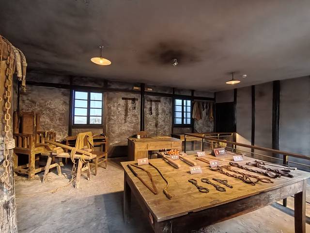 渣滓洞有牢房、看守所长室,还有审讯台、审讯室有铁锁链、竹签、辣椒水、老虎凳等酷刑,上学的时候就学过江姐曾关押在这里,可以想象被关押在这里的英雄烈士受尽了怎样的酷刑,即便在这种恶劣的环境下仍然坚持斗争,这些英烈的壮举值得大家铭记