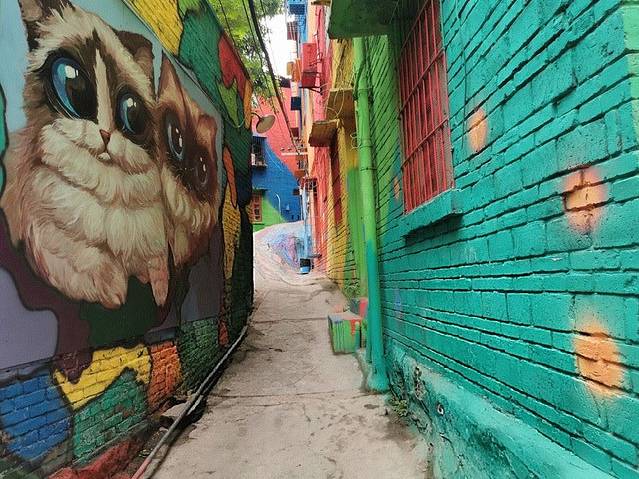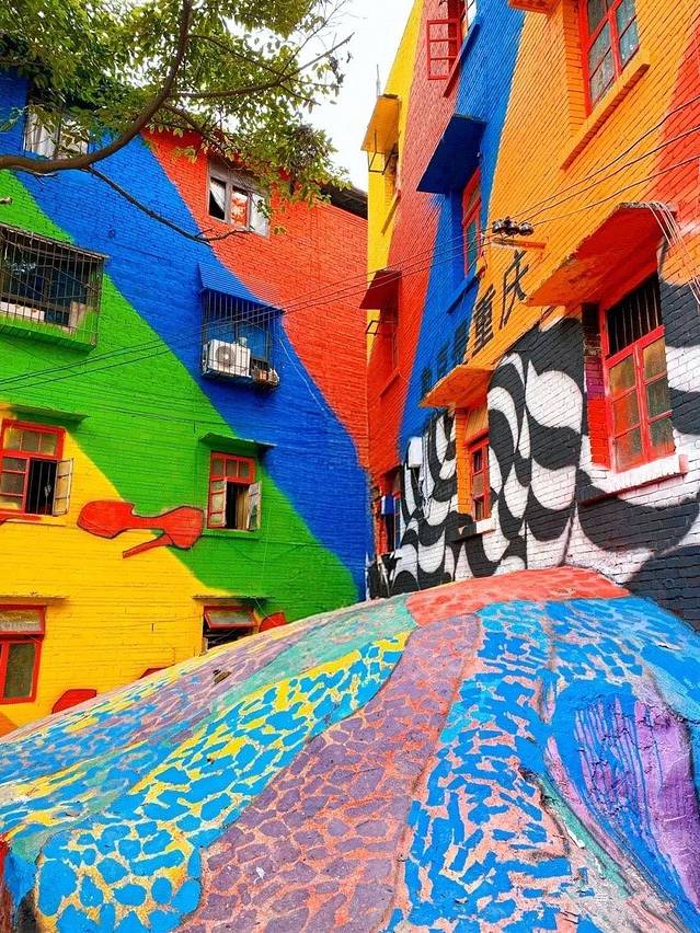 马房湾七彩巷新晋网红打卡地,我也是看到网上的推送慕名而来的,七彩巷由几排老旧房子涂鸦而成,红的、绿的、蓝的、黄的,各种色彩相互碰撞,给这条小巷增添了许多生趣
