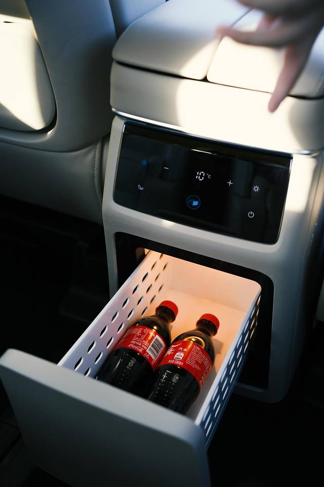 全粒面NAPPA真皮座椅很舒服,就像飞机头等舱一样,后排坐着舒适,前排开车也轻松。车内还有一个12.5L的双开门独立压缩机冷暖冰箱,双层设计空间够大,双开门设计,前后排拿取都很方便,带上全家人喜欢的饮品,随时都可以补充能量~