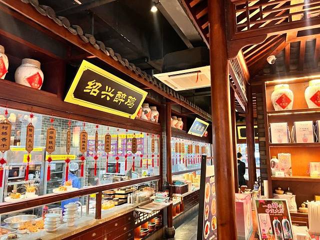 👣一走进店门,仿佛穿越到了古色古香的江南水乡,每一处细节都透着绍兴的韵味,连空气里都弥漫着黄酒的醇香~🍶走在这样的环境里,心情都美美哒!💕