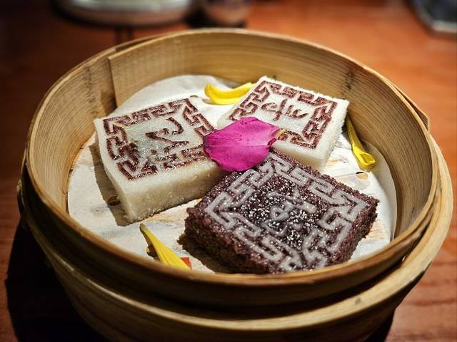 🍰甜品也不能少,他们家的【绍兴印糕】糯叽叽星人见到走不动的菜,本以为徒有一副皮囊,没想到颜值和味道兼并了,白色的-红豆沙馅;黑色的-黑芝麻馅的,表皮是那种南方糕点的松软和粘弹,还是很喜欢的,吃完还想打包带走几份呢!🌸