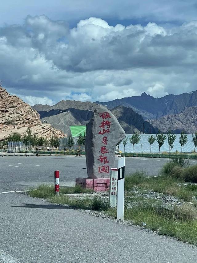 出发前,海力力带我先去办理了边防证。离开 喀什 ,一路往边境开,看到路边的两个石碑,“愿将此身长报国,风展红旗护西极”,就即将到边境站了。