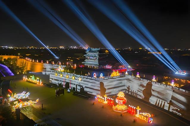 平遥古城3D灯光秀,采用三维投影、三维立体声光电等技术,将古城墙与动画完美融合。投影以13500个像素点,对迎薰门楼体实现全方位精准覆盖;画面视角能够辐射整个广场,极具视觉冲击力。如有机会,不妨前亲身体验一番。灯光秀9点准时开始,演出大致为18分钟。假如遇到雨雪、大风等不可抗力因素,可能会停止放映,恢复时间以景区通告为准。