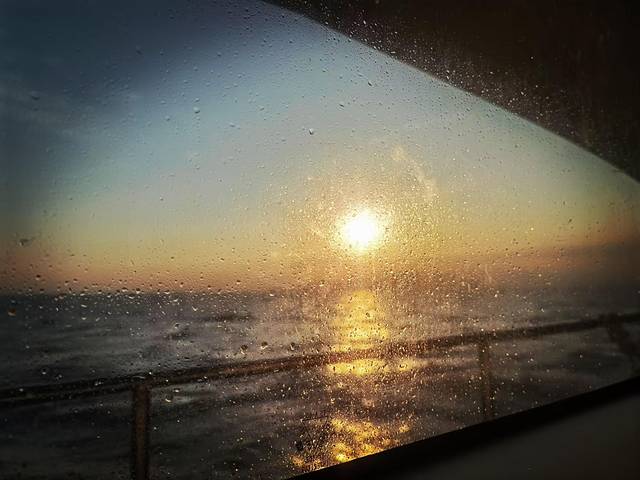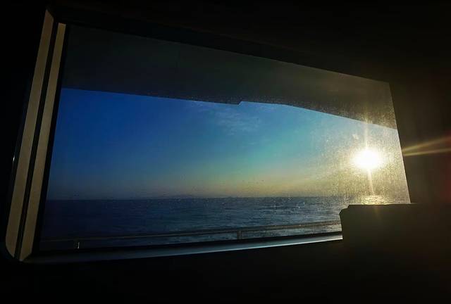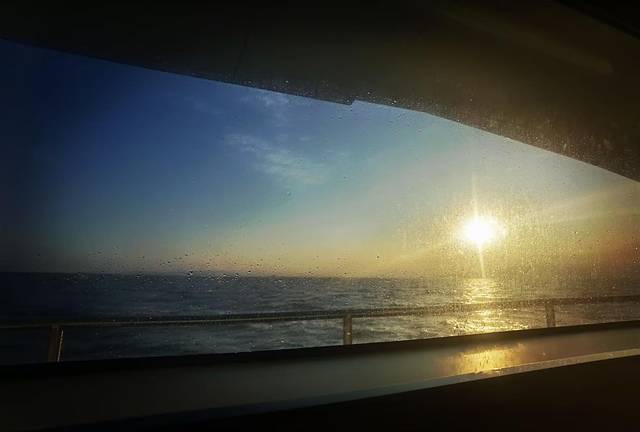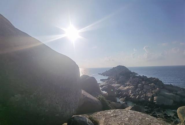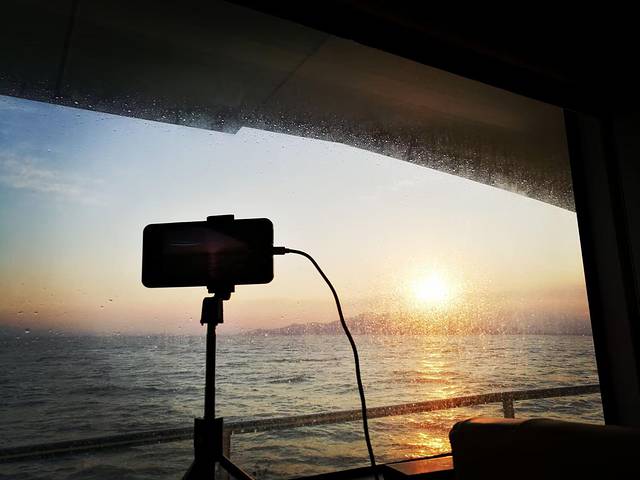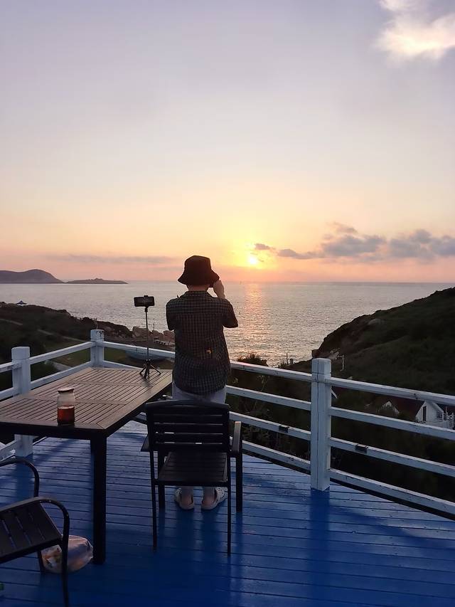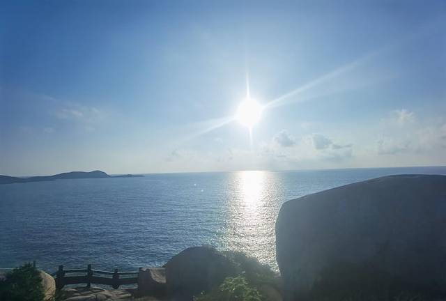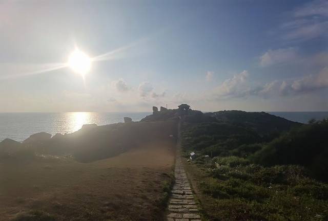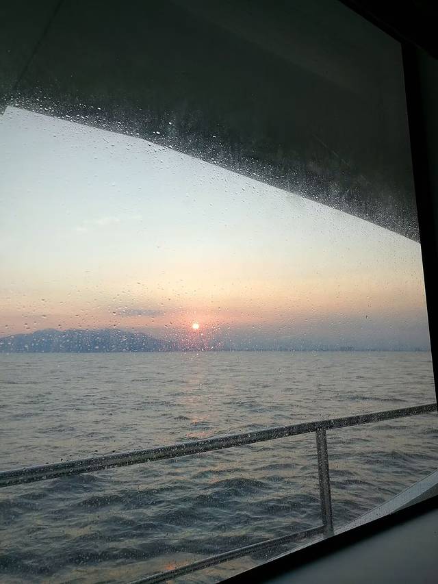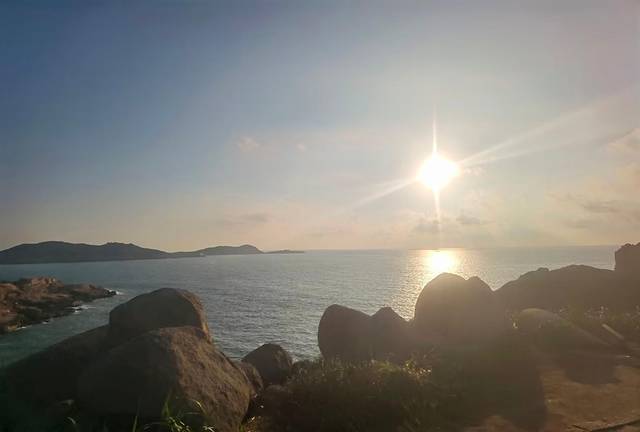 太阳开始西下, “一道残阳铺水中,半江瑟瑟半江红。”我们在东海又见夕阳红。当一轮红日徐徐地落下海平面的时候,天边的那一抹醉人的余晖,海上那一片斑斓的金光,仿佛是给我们的这次海岛之行,缓缓地拉上了帷幕。有诗情、有画意,我又想说两个字:完美!