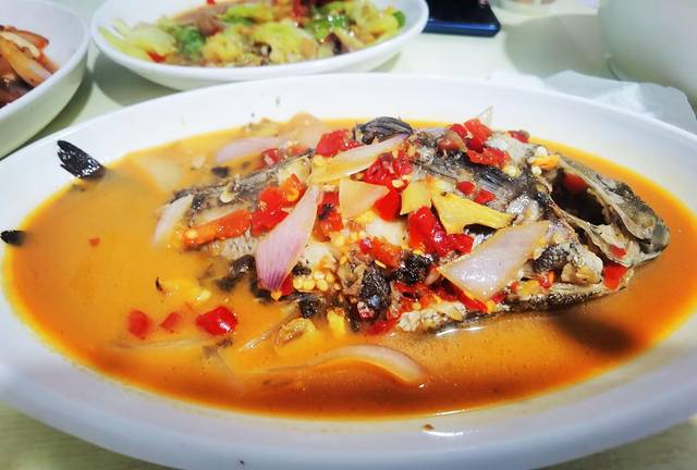 淡定的吃完后,扫码买单,准备撤退,一位经理模样的大姐走了过来,跟我们打招呼,大致意思是:我们的意见,她已经跟厨师长反映了,并要求整改,为了表达餐厅的诚意,给我们送一道招牌菜:秘制九味鲫鱼,问我们可不可以接受?突然之间,我们有点措手不及。提个意见,搞得我们好像是要吃霸王餐一样。哈哈~我们接受了餐厅的诚意,又坐了下来,品尝了秘制九味鲫鱼,这道菜的做法的确与众不同,味道真心不错,可以种草!不得不这么说,这位经理的应急处置方式,让我们对这家餐厅的感觉又一次反转了。能倾听消费者的不同意见并虚心整改,这样的餐厅我相信会走的更远!这顿晚餐吃得有点意思。