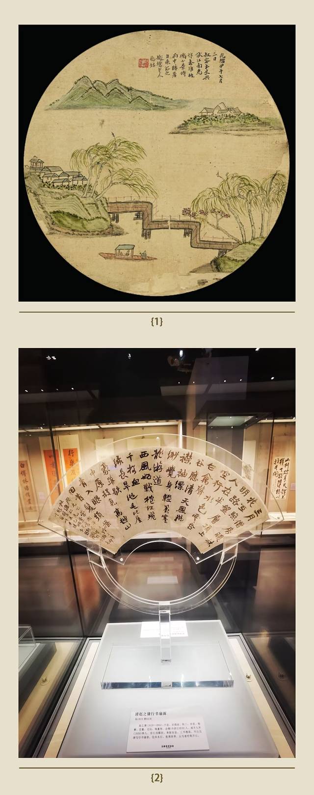 在馆藏藏品中,还有董其昌、何白、沈士充、伊秉绶、任伯年、康有为、于右任、张大千、林散之等名家佳作。其中:清·李慈铭的山水团扇面(图四)、清·赵之谦的行书折扇面(图六)尤为珍贵。李慈铭的山水团扇面并未在展厅展出,图片为网络图片。