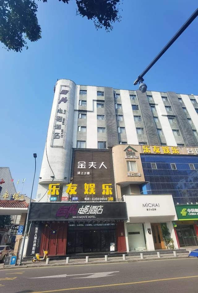 到温州市平阳县鳌江镇后,住哪儿?在网上找寻一家家酒店时,一家巨片电影酒店进入了我们的视线。