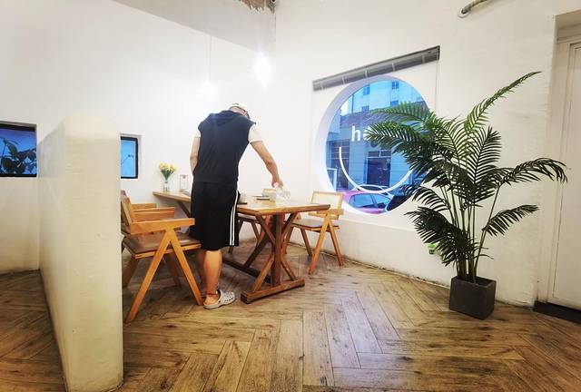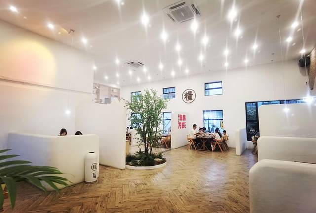 餐厅位于鳌江镇老城区城中心的一条小河河畔,一进大门,以白色为主基调的风格,让人眼前一亮,餐厅内外的白色墙面+院子里的白色帐篷+原木色的桌椅和绿植,整个氛围搭配的很是简约,满满的一股子奶油网红味儿!一楼的大厅很宽敞,卡座式座位设计的很有私密性、很有空间感,保持了一定的安全距离,只要你不是高声说话,邻桌之间的说话声不会窜桌,二楼是包间,整个就餐环境第一印象很是不错。