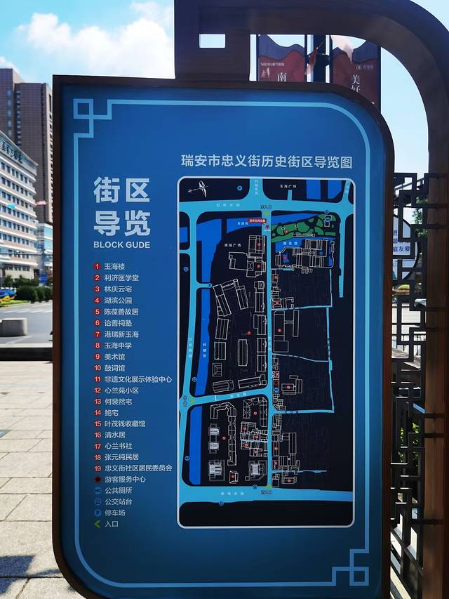 2、古迹遗址。忠义街上保留了很多的古建筑和传统的文化元素,清末民国的建筑风貌与现代商业的建筑格调,古今融合、交相辉映,古迹遗址保存尚好,主要有:玉海楼、利济医学堂、心兰书社、诒善祠塾、中国人民银行旧址等各级文保单位,以及鲍宅、林庆云宅、何裴然宅、孙锵鸣宅、大沙堤孙宅、张云纯民居、陈葆善故居、李维樾故居等10多座老建筑,还有非遗馆、鼓词馆、玉海美术馆、叶茂钱收藏馆等场馆,有着浓郁地方特色的品牌产品,像李大同老三房糕点、蓝夹缬衍生品、长生居古玩,以及各种传统美食小吃、工类店铺、网红复古体验店、农产文创产品等多元化业态,也分布在这条历史文化街区内。