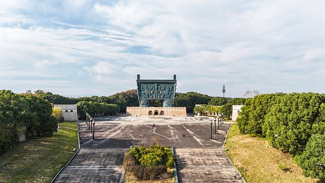 我在南昌的最后一站,是参观傩文化公园,在八卦广场上,南昌瓷板画艺术博物馆以其独特的青铜大鼎造型矗立其中,显得格外引人注目。