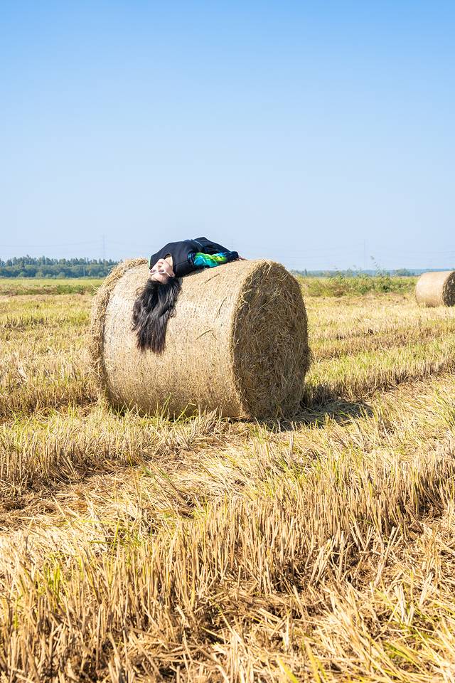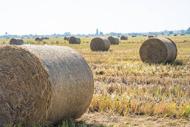 在广阔的农田中,金黄色的草垛子卷成一个个圆柱体,我在这里拍了几张照片,画面充满了乡村的宁静和质朴,让人感受到了与城市截然不同的生活节奏。