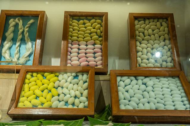 在这里的蚕桑丝绸生态博物馆是中国几千年蚕桑丝绸历史文化的缩影。从栽桑、养蚕、缫丝到织绸和贸易的全过程了解,通过图片、模型和艺术表演的方式生动地展现在我面前。
