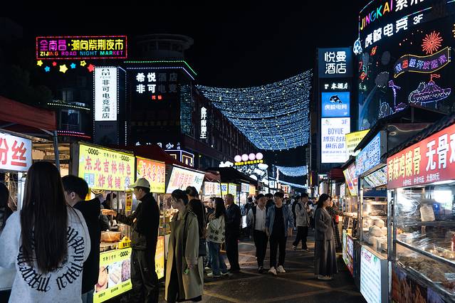接下来,我直奔紫荆夜市,那里可是南昌的夜生活心脏地带。一走进去,我就被那热闹劲儿给震住了,简直就是大学生的美食天堂嘛!
