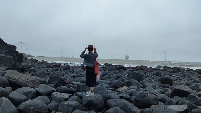 镜沙大片的黑礁石,和海上整齐排列的风车,除了风大,景色还是不错的!