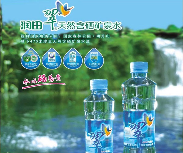 ❤天然含硒矿泉水:润田取自地下470米处天然优质矿泉水,其中硒、锶、偏硅酸均优于国家引用天然矿泉水标准,是矿泉水中的珍惜品种。