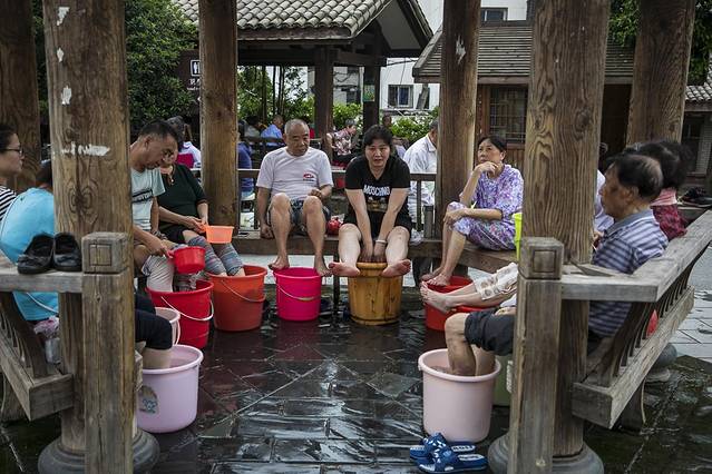 🌟游览古井泉街,街道两旁是各色店铺,琳琅满目,同时各种足浴、按摩店应接不暇,最有特色的当属温泉水泡脚。泡脚一般10元,按摩35元,修脚25元。当然入住以后,也可以自己带桶去打水泡,大概1元钱一桶,其实你也可以在民宿里泡,但泡脚讲究的是一个氛围,花1元钱跟来自天南地北的泡脚大军在一起泡脚聊天也别有一番韵味。