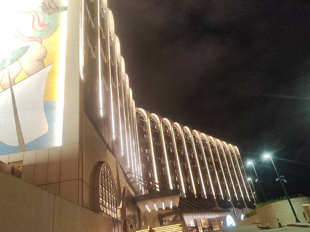 隔壁上葡京的二楼灯饰,楼下就是赌场,门口有公交车,然后去拱北的免费车比葡京人早。